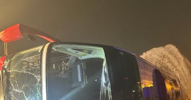 إصابة شخص إثر سقوط أتوبيس من أعلى نفق أحمد بدوى بشبرا.. صور