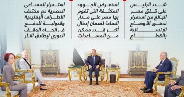 الرئيس السيسى يعبر عن قلق مصر البالغ من تدهور الأوضاع الإنسانية فى غزة (إنفوجراف)