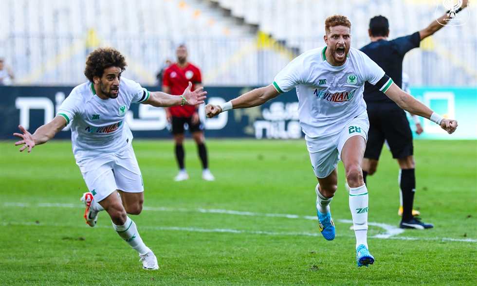 لاعبو المصري يحتفلون بهدف فخر الدين بن يوسف أمام طلائع الجيش