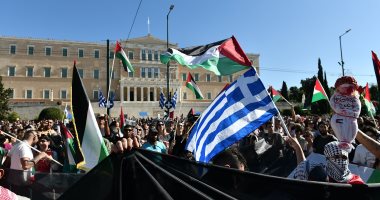 مظاهرات حاشدة فى اليونان تحت شعار “فلسطين حرة” تضامنا مع غزة.. فيديو