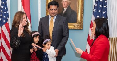 أدت اليمين برفقة طفلتيها.. من هى هيرو مصطفى السفيرة الأمريكية الجديدة لدى مصر