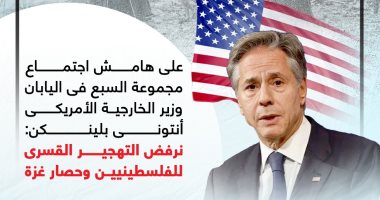 وزير الخارجية الأمريكى: نرفض التهجير القسرى للفلسطينيين وحصار غزة..إنفوجراف