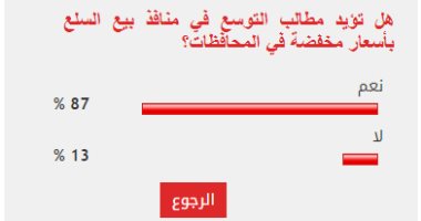 87% من القراء يطالبون بالتوسع في منافذ بيع السلع بأسعار مخفضة بالمحافظات