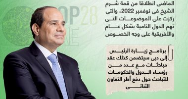 الرئيس السيسى يتوجه اليوم للإمارات للمشاركة بمؤتمر تغير المناخ كوب 28.. إنفوجراف