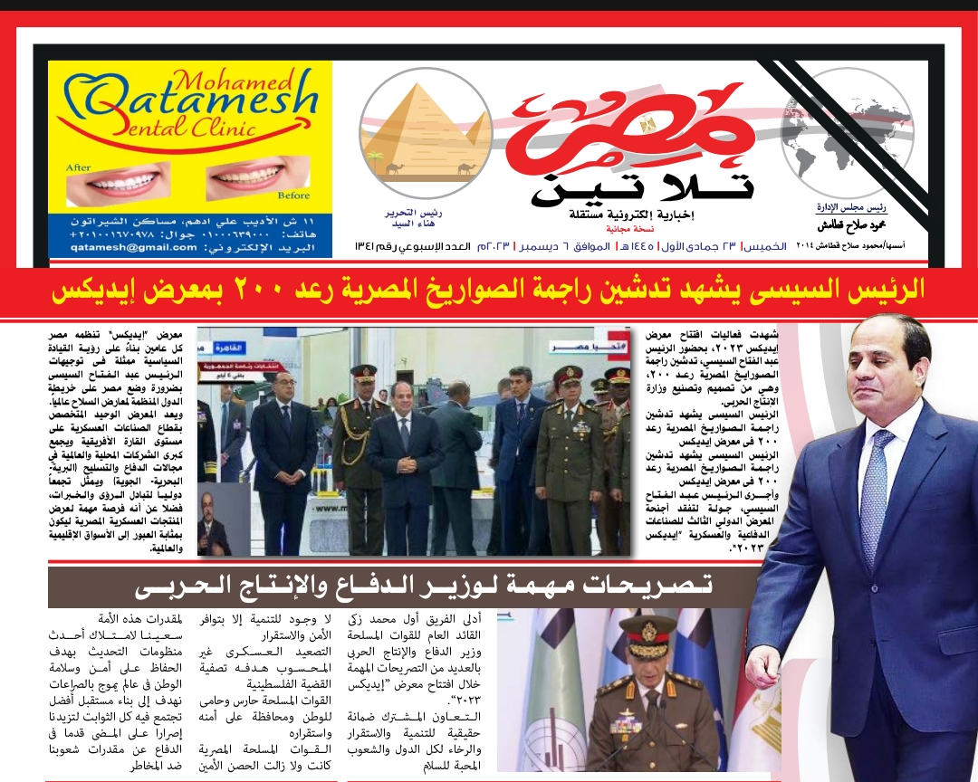 تقدم صحيفة مصر تلاتين عدد اسبوعي يصدر عن الصحيفة كل يوم خميس نستعرض فيه ونوثق أهم أحداث الاسبوع على المستوى المحلي والعالمي .