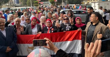 علم مصر يزين احتفالات المصريين بانتخابات الرئاسة أمام مدرسة القومية بالعجوزة