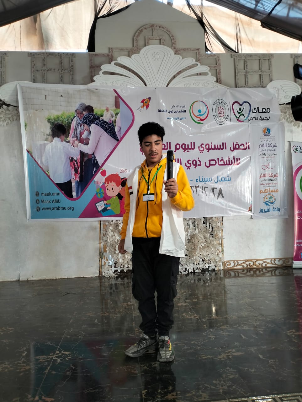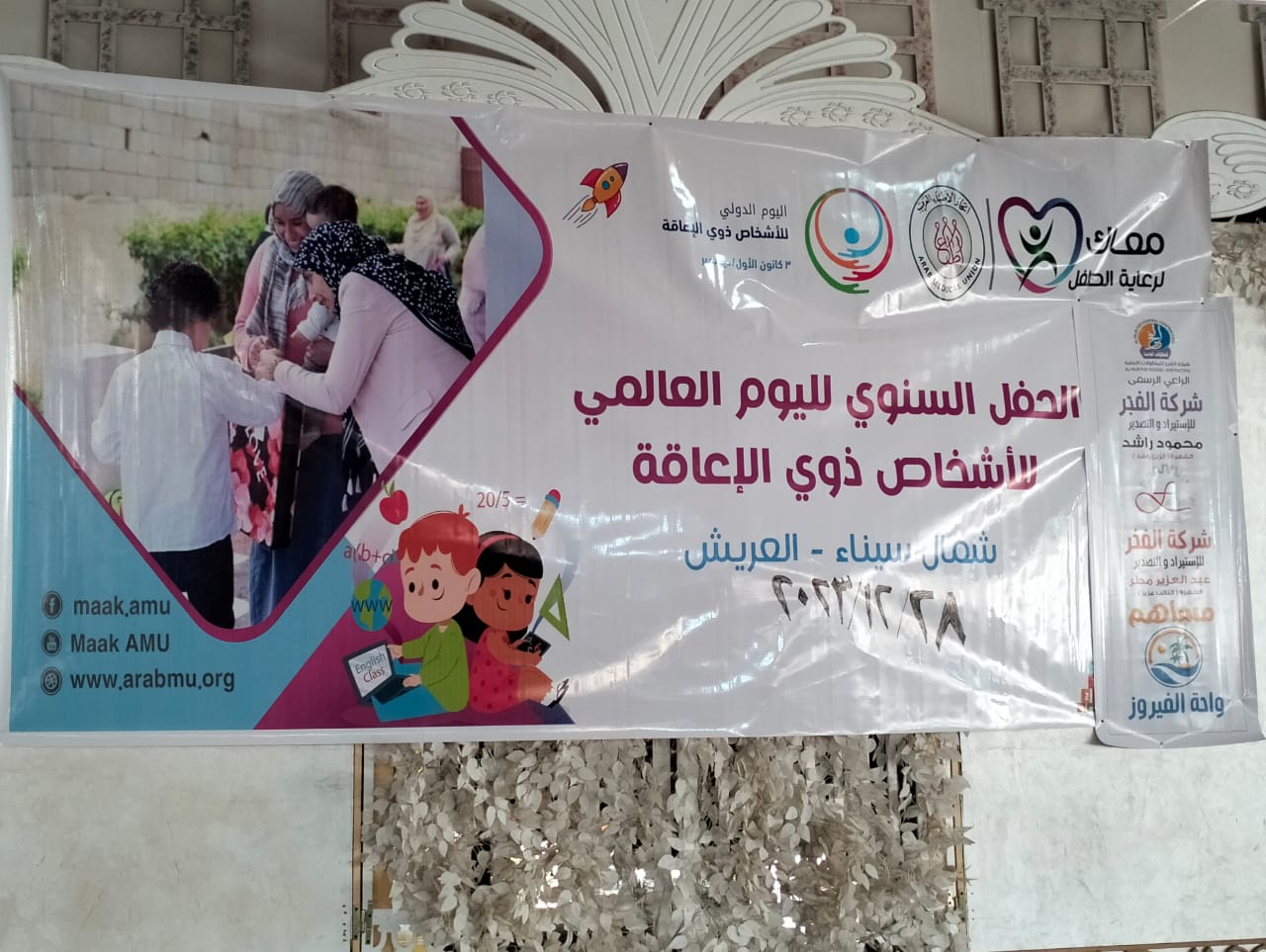 احتفل مركز” معاك” لرعاية الطفل باليوم العالمي لذوي الاحتياجات الخاصة وذلك تحت شعار متحدون في العمل من اجل تحقيق اهداف التنميه المستدامه لذوي الإعاقة برعاية شركة الفخر للاستيراد والتصدير المهندس محمود راشد نجل الحاج الزين راشد وشركة الفخر لعضو مجلس الشعب عزيز مطر وبمساهمه من رضا الكاشف رئيس مجلس ادارة واحة الفيروز بمدينة العريش .