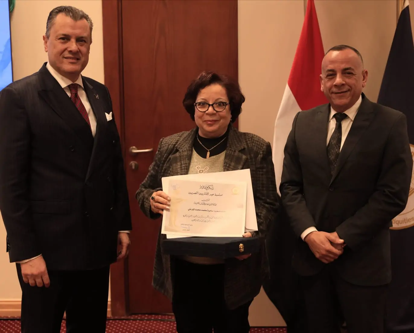 كما تم تكريم د. منى فؤاد على عبد الغنى أستاذ ترميم الآثار بكلية الآثار جامعة القاهرة، والتي شاركت بعضوية العديد من اللجان العلمية ومنها عضوية اللجنة الدائمة للآثار المصرية عام 2013 حتى الآن، كما أن لها العديد من الإسهامات العلمية في مجال تأليف الكتب العلمية والمراجع المترجمة، بالإضافة لمشاركتها في العديد من اللجان العلمية والورش والندوات، فضلا عن عدد من المشاريع البحثية والمنشورات العلمية المتخصصة في علوم ترميم الآثار، بالإضافة إلى تكريم الأستاذة آلاء سمير عثمان رئيس الإدارة المركزية للمعلومات سابقا بوزارة السياحة والآثار لإسهاماتها في ملف التحول الرقمي بالوزارة والذي خطي خطوات كبيرة.