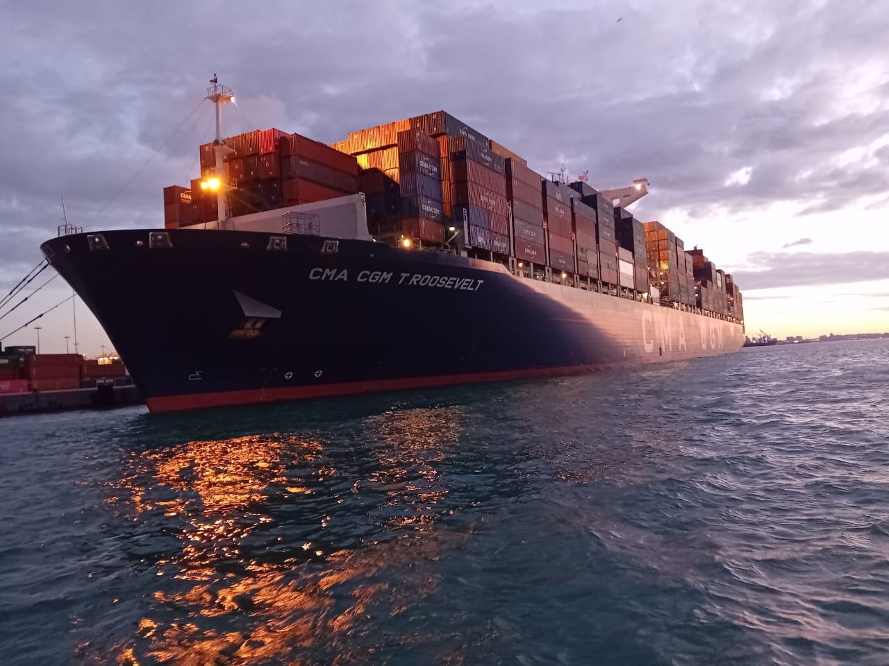 استقبلت الهيئة العامة لميناء الإسكندرية، مساء أمس السبت، سفينة الحاويات العملاقة T.ROOSEVELT توكيل CMA CGM والتي يتم تراكيها لأول مرة بأرصفة ميناء الإسكندرية، برقم التسجيل IMO 9780873 والتي تعد أكبر سفينة حاويات تصل إلى ميناء الإسكندرية حتى تاريخه، حيث تم استقبالها على رصيف محطة تحيا مصر متعددة الأغراض، والتي افتتحها الرئيس عبد الفتاح السيسي، رئيس الجمهورية، في يونيو 2023.
