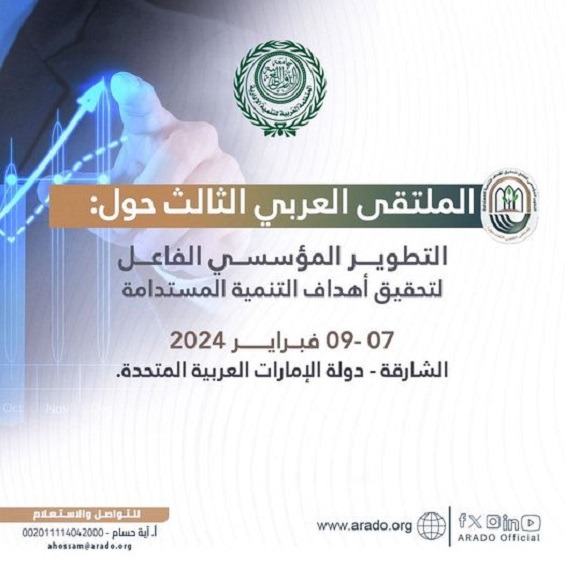 تعقد المنظمة العربية للتنمية الإدارية- جامعة الدول العربية ” الملتقى العربي الثالث حول: التطوير المؤسسي الفاعل لتحقيق أهداف التنمية المستدامة”، خلال الفترة من 9:7 فبراير في الشارقة – دولة الإمارات العربية المتحدة.