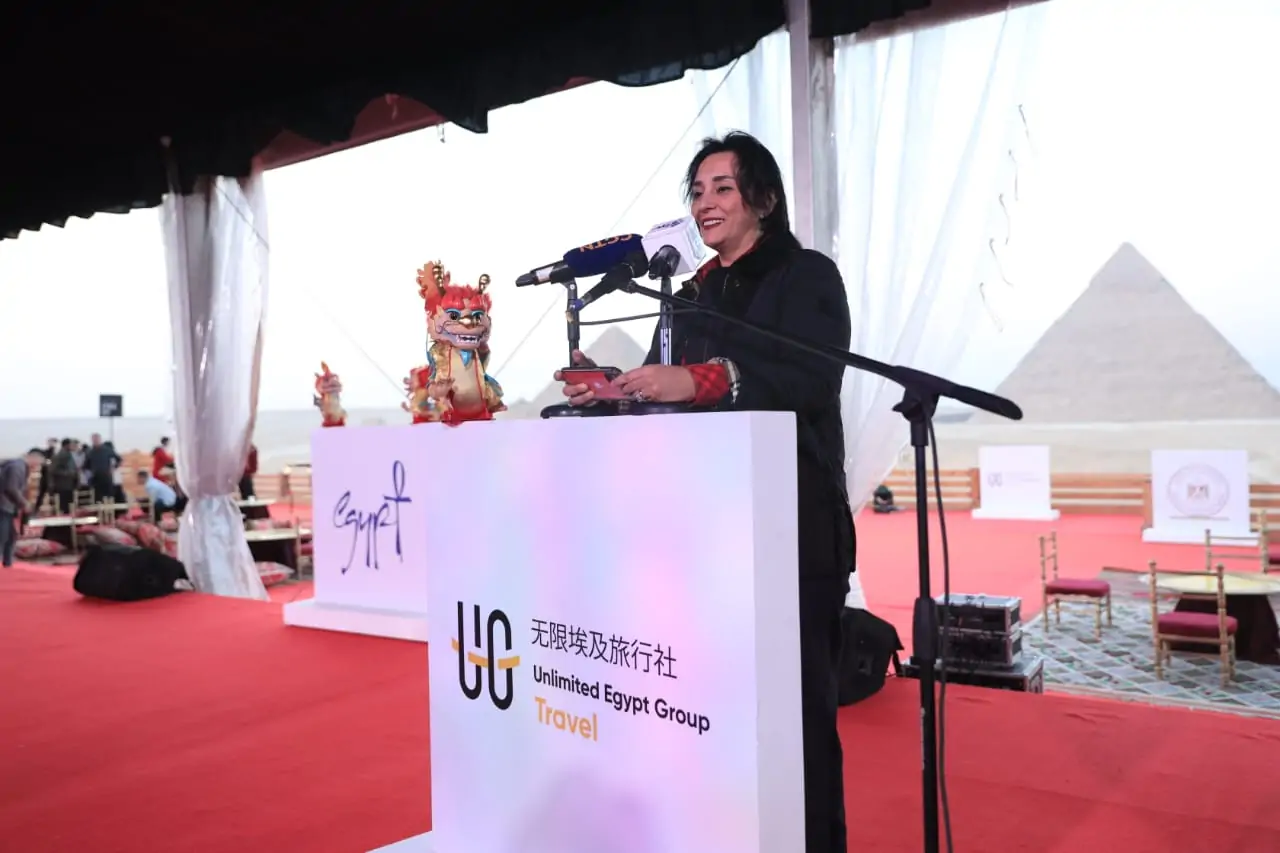 نائب وزير السياحة والآثار لشئون السياحة تشارك في الاحتفال بعيد الربيع الصيني بأهرامات الجيزة