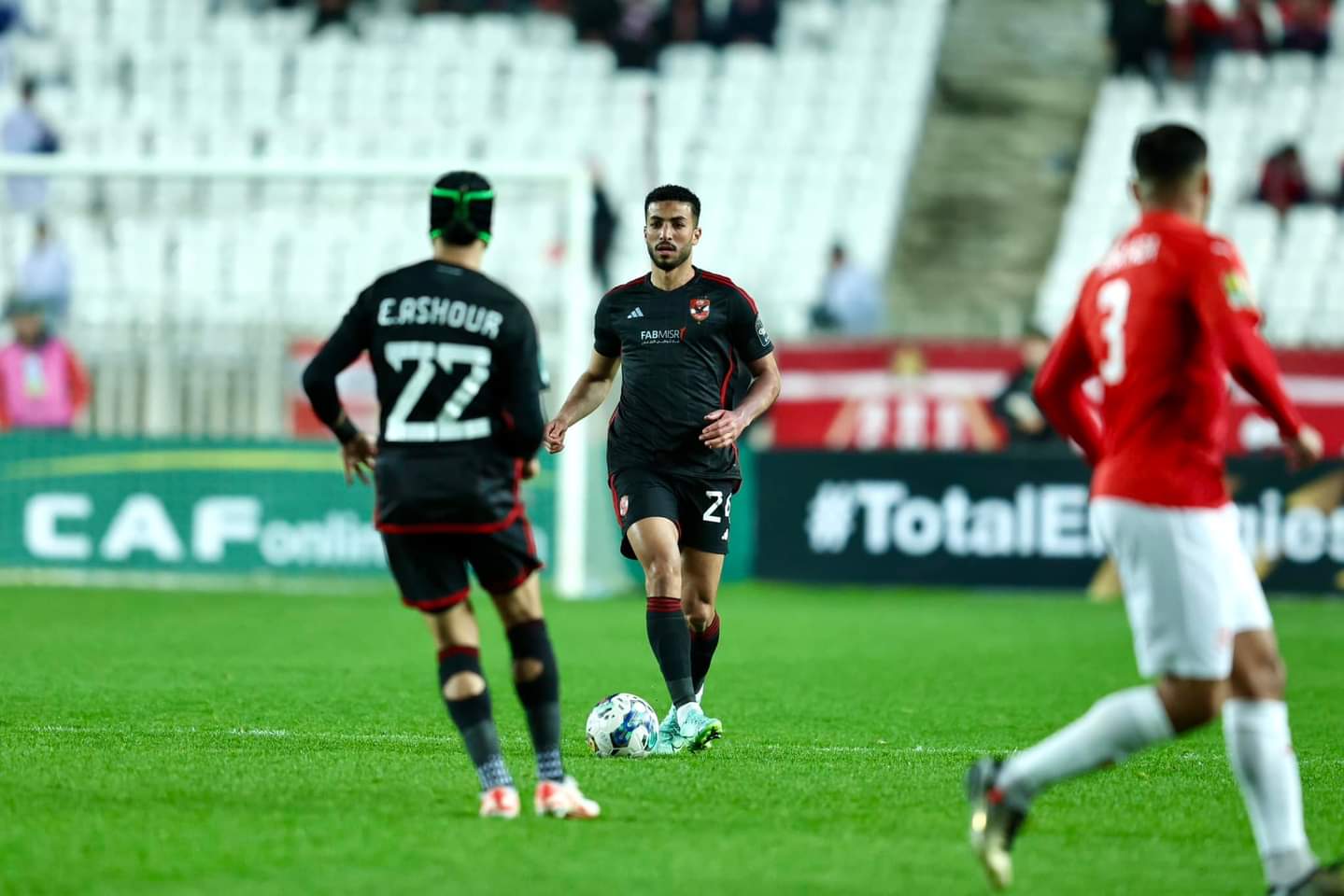بعد مرور 25 دقيقة استمرت محاولات لاعبي الأهلي من خلال تمريرات معلول وتحركات الشحات وموديست في الجانب الأمامي، وسط تمركز دفاعي جيد لشباب بلوزداد.