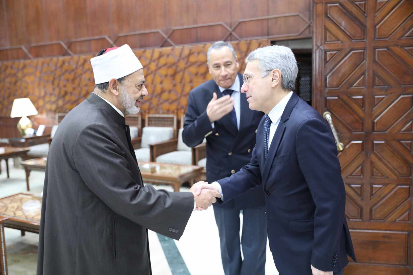 استقبل الإمام الأكبر الدكتور أحمد الطيب شيخ الأزهر الشريف، اليوم الأحد، بمشيخة الأزهر، السفير باولينو نيتو، سفير البرازيل لدى القاهرة، لبحث سبل تعزيز التعاون المشترك.