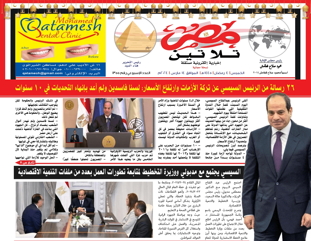 تقدم صحيفة مصر تلاتين عدد اسبوعي يصدر عن الصحيفة كل يوم خميس نستعرض فيه ونوثق أهم أحداث الاسبوع على المستوى المحلي والعالمي .