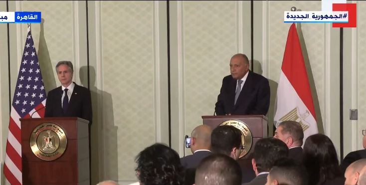 وأضاف خلال مؤتمر صحفي نظيره الأمريكي أنتوني بلينكن بالقاهرة، مساء الخميس، أن هناك مخاطر تترتب على أي عملية عسكرية سواء على الوضع الإنساني أو فيما يتعلق بقضية التهجير وتصفية القضية الفلسطينية أو نقل العبء إلى دول أخرى سواء مصر أو الأردن.