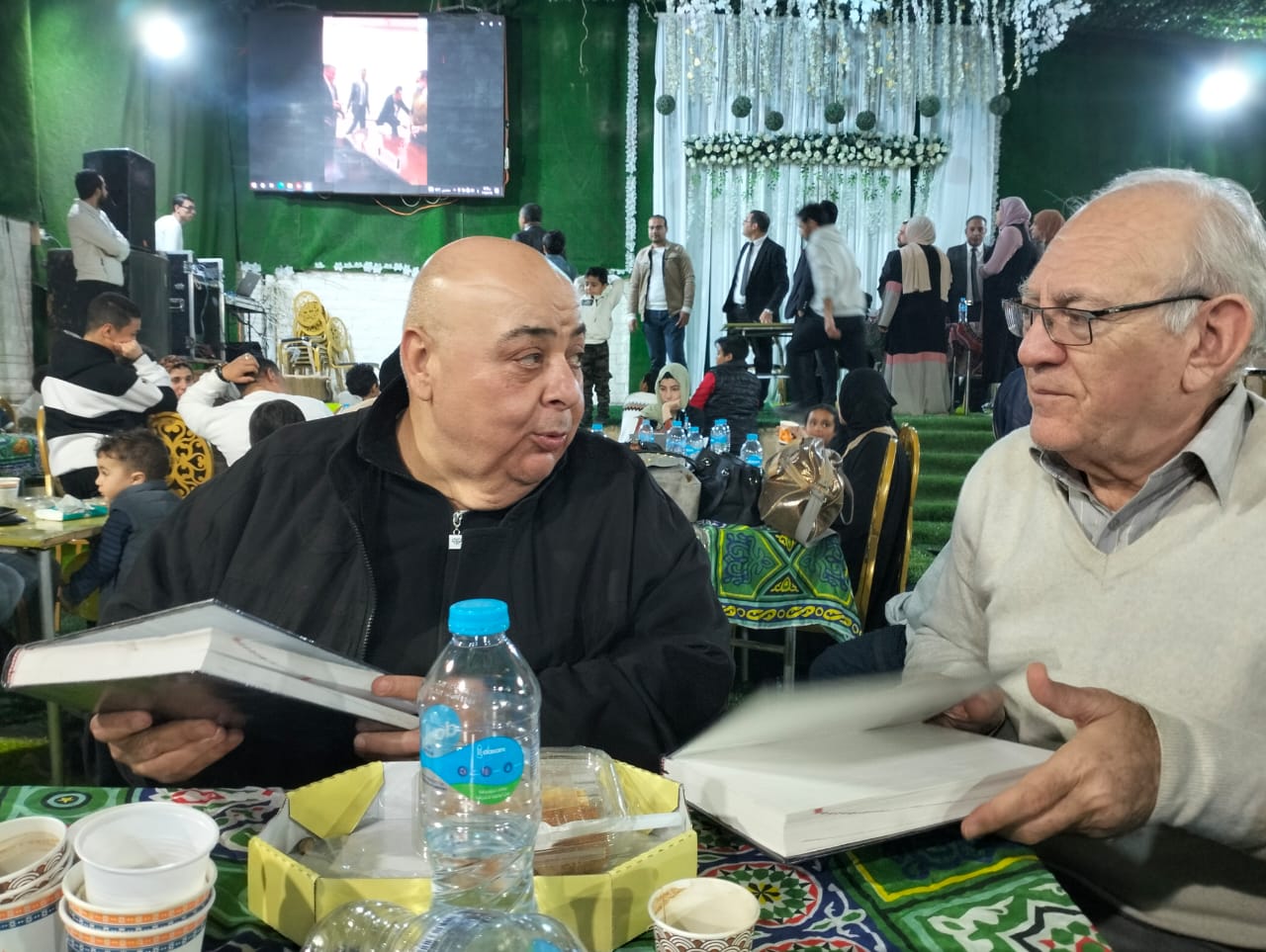 تامر عبد الفتاح وكيل النقابة و ايمن الخولى وصابر النخلاوى امين الصندوق و احمد العسكرى امين عام النقابة و اشرف فروز ممثل الشباب بمجلس النقابة وسليمان ابراهيم اللذين اعربو عن سعادتهم بمشاركة المحامين والمحاميات واسرهم فى الافطار الجماعى.