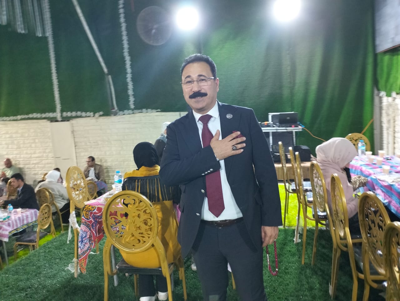 تامر عبد الفتاح وكيل النقابة و ايمن الخولى وصابر النخلاوى امين الصندوق و احمد العسكرى امين عام النقابة و اشرف فروز ممثل الشباب بمجلس النقابة وسليمان ابراهيم اللذين اعربو عن سعادتهم بمشاركة المحامين والمحاميات واسرهم فى الافطار الجماعى.