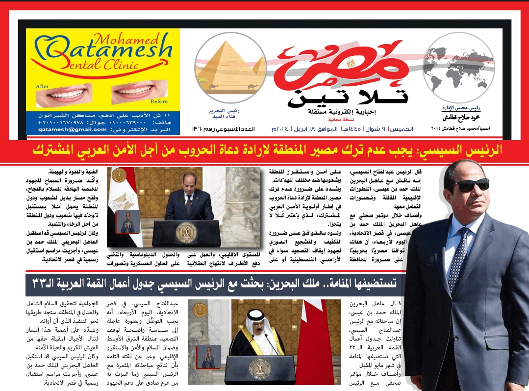 كما يمكنكم تصفح العدد اونلاين مباشرة على الصحيفة اسفل هذا السطر