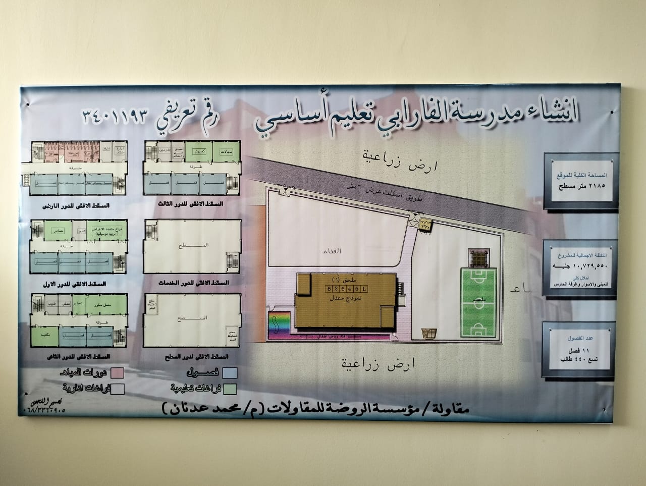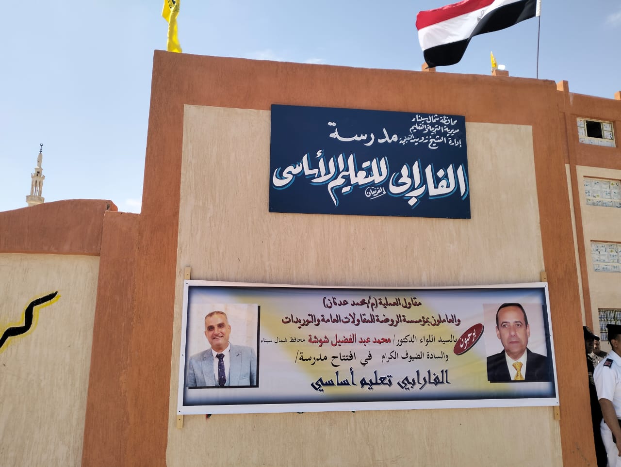 أشار المحافظ الي افتتاح مدرسة الفارابي للتعليم الأساسي في قرية الجورة بالشيخ زويد بتكلفة 11.1 مليون جنيه على مساحة 2185 متر مربع، حيث تضم عدد من الفصول الدراسية ومعامل وفراغات تكميلية وملعب ومساحة للتوسعات المستقبلية.