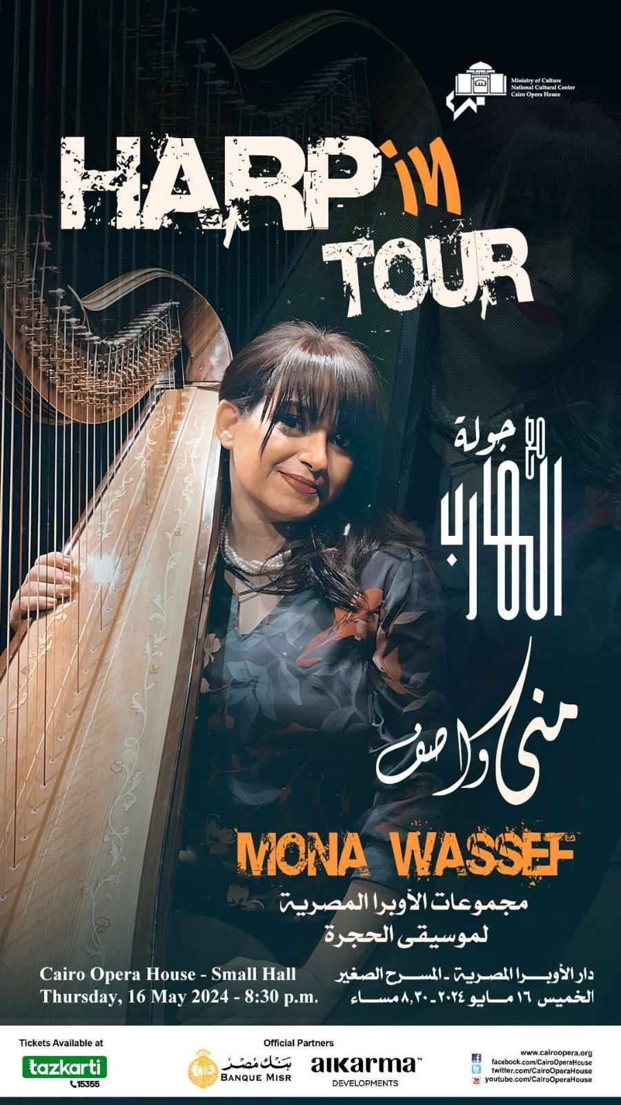 تقدم دار الأوبرا المصرية، برئاسة الدكتورة لمياء زايد، حفلا بعنوان “جولة مع الهارب” للعازفة منى واصف ومجموعات الأوبرا للموسيقى الحجرة، وذلك في الـ8:30 مساء الخميس المقبل على المسرح الصغير.
