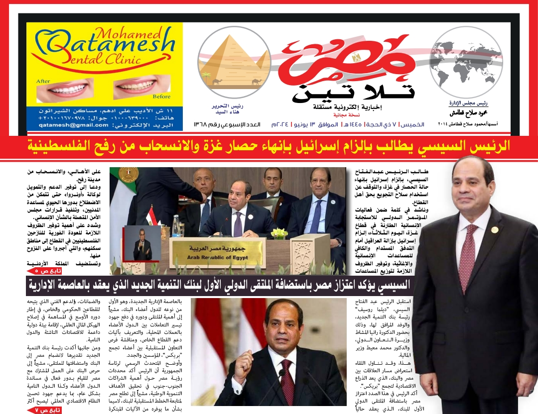 تقدم صحيفة مصر تلاتين عدد اسبوعي يصدر عن الصحيفة كل يوم خميس نستعرض فيه ونوثق أهم أحداث الاسبوع على المستوى المحلي والعالمي .