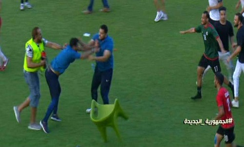 شاهد.. معركة دامية بعد نهاية مباراة حرس الحدود وسبورتنج
