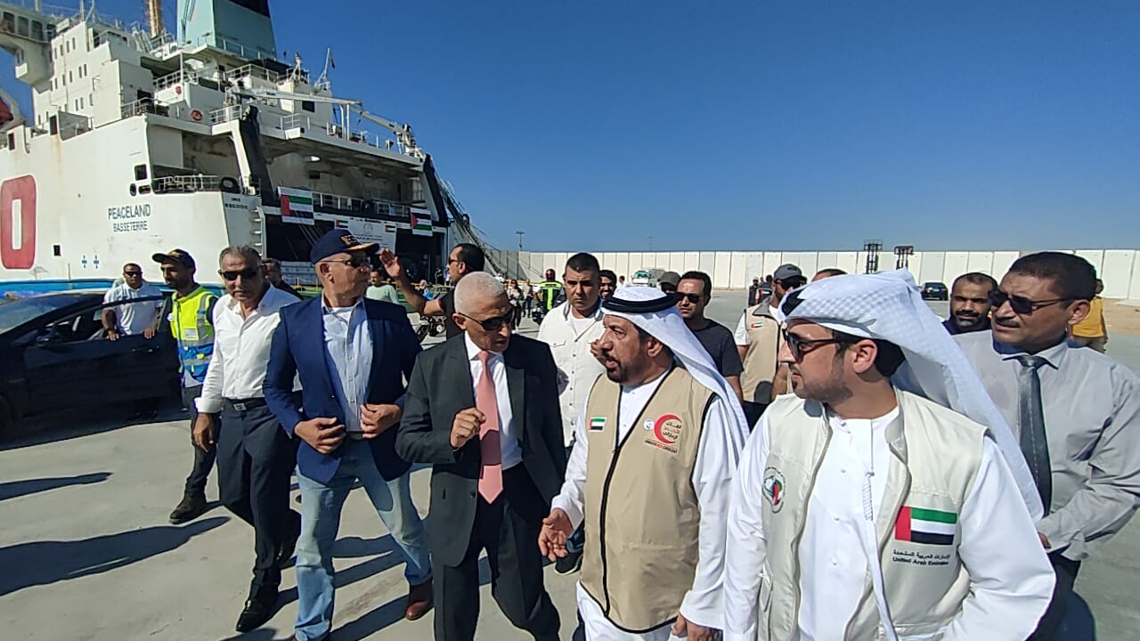بالصور.. محافظ شمال سيناء يستقبل سفينة المساعدات الإماراتية في العريش