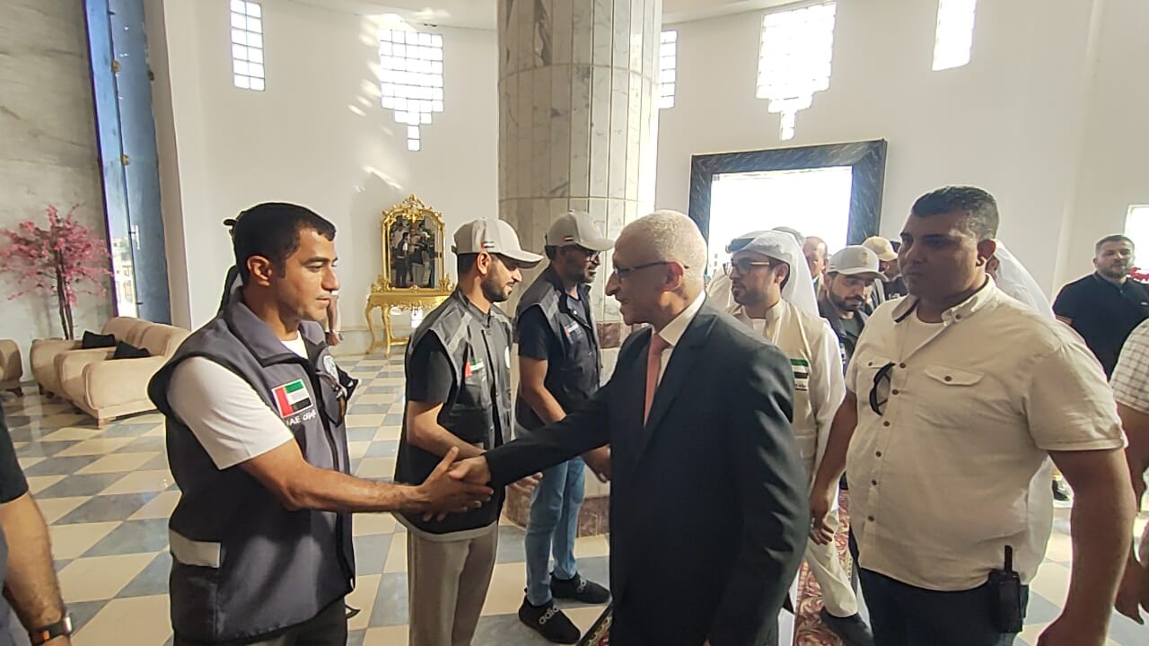 وثمن المحافظ الدور الذي تقوم به دولة الإمارات العربية المتحدة في دعم الاشقاء الفلسطينيين بالمساعدات الاغاثية المتنوعة وتطبيب جراح الفلسطينيين من خلال المستشفي الميداني في قطاع غزة والمستشفي العائم في ميناء العريش البحري.