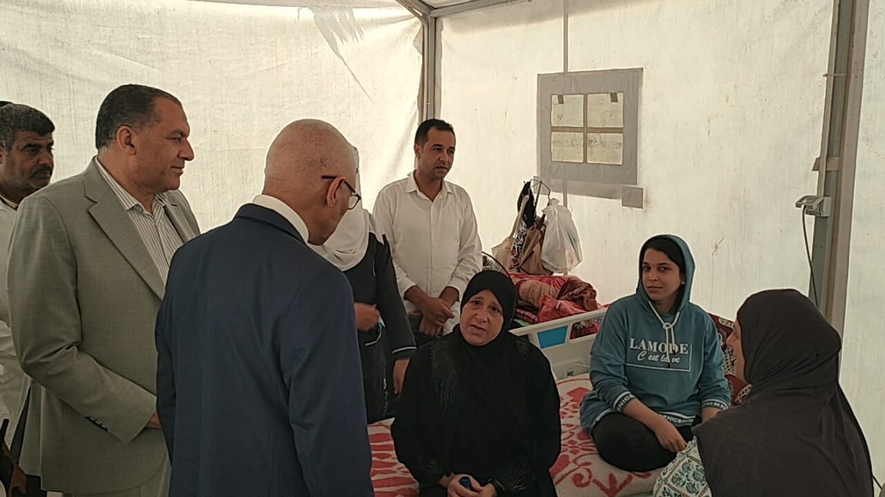 وتحدث المحافظ مع جميع الحالات من الفلسطينيين والمرافقين وكذا القائمين على رعايتهم ، مؤكدا على الدور الذي تقوم به الدوله في اطار هذه الازمه ،وموجها الشكر للطاقم الطبي القائم على رعايه الحالات الموجوده بالمستشفى.