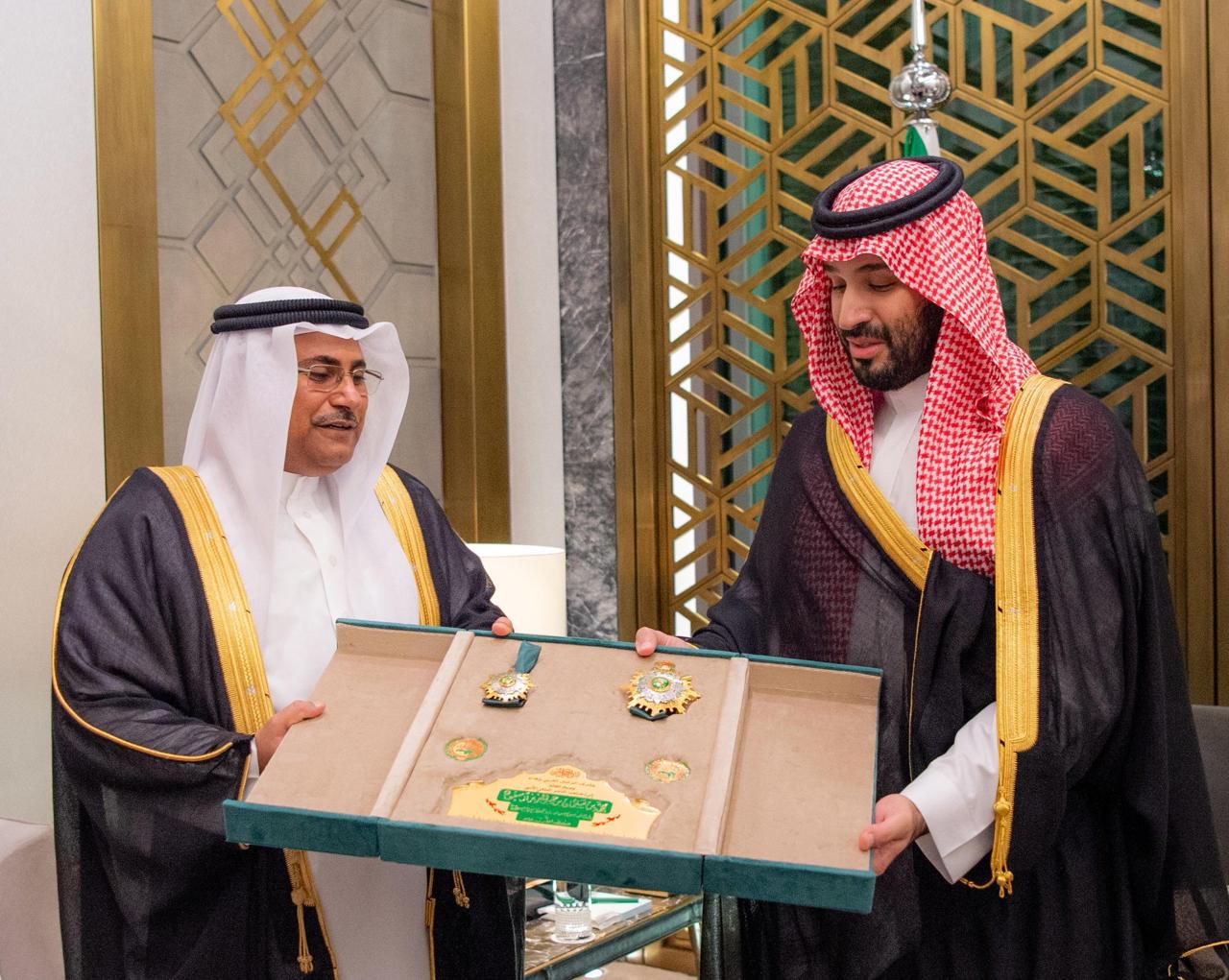 صاحب السمو الملكي الأمير محمد بن سلمان ولي العهد السعودي يستقبل رئيس البرلمان العربي ويتسلم وسام القائد