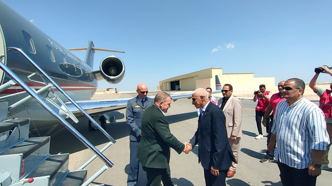 ،وزير الخارجية الدنماركي، والوفد المرافق له ، خلال وصولهم الي محافظة شمال سيناء عن طريق مطار العريش الدولي،في حضور اللواء عاصم سعدون نائب المحافظ.