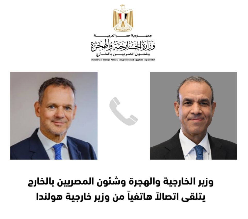 تلقى الدكتور بدر عبد العاطي، وزير الخارجية والهجرة، اليوم الأربعاء، اتصالاً هاتفياً من نظيره الهولندي كاسبر فيلدكامب.