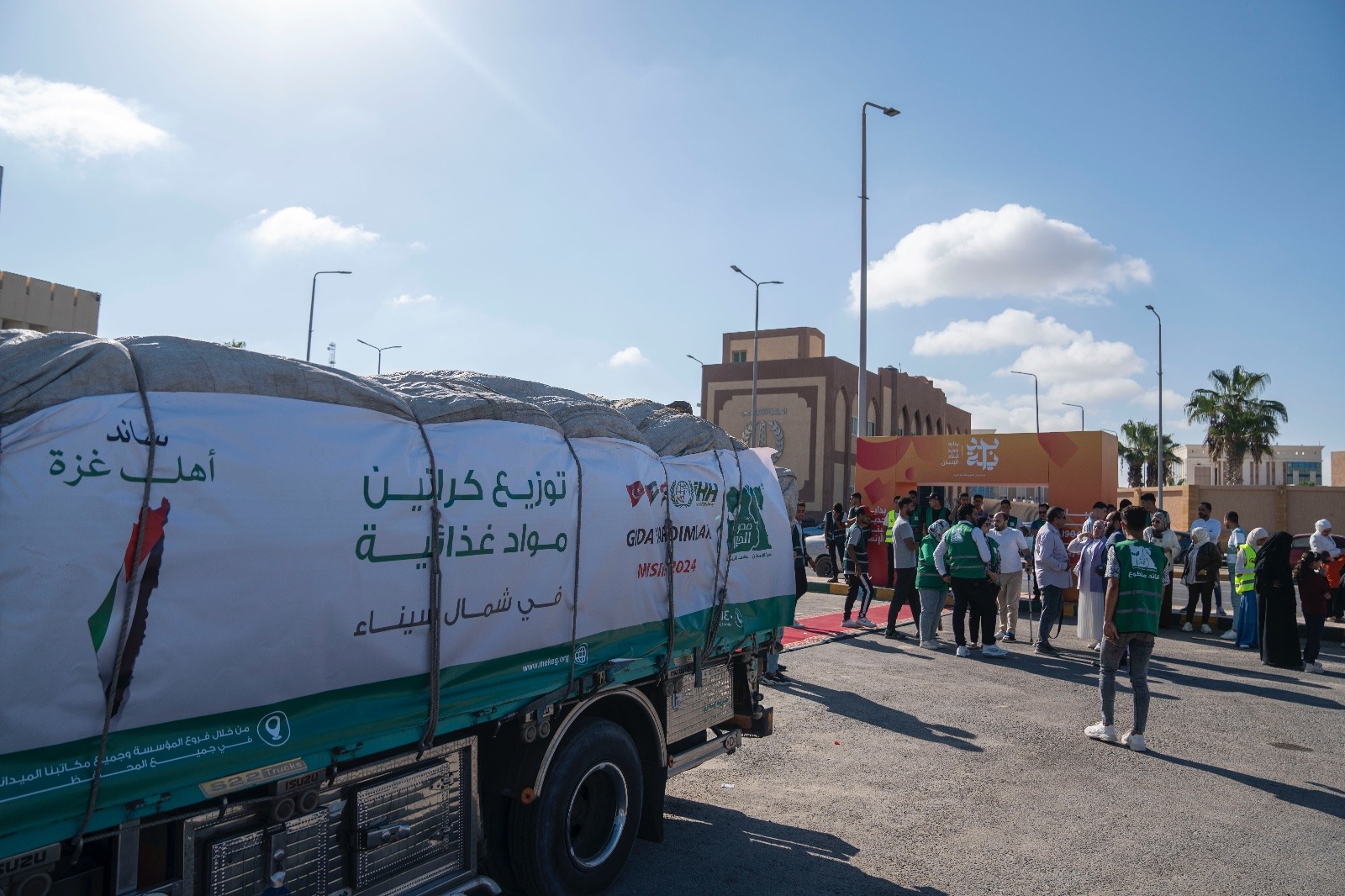 بالصور… محافظ شمال سيناء يشهد اصطفاف شاحنات مصر الخير