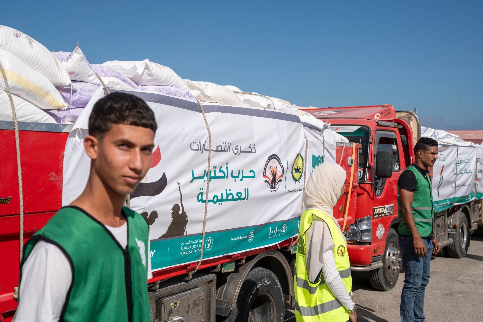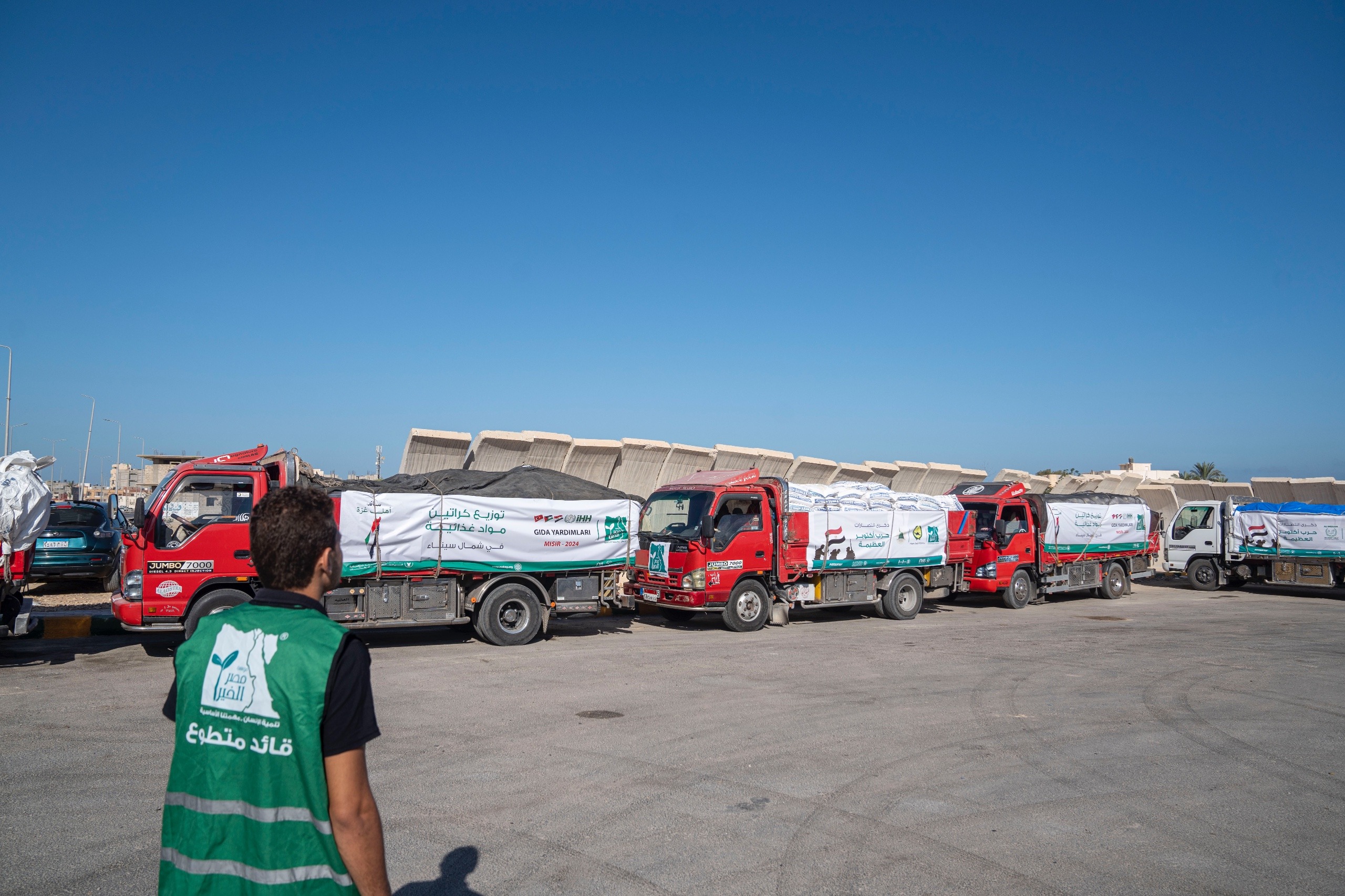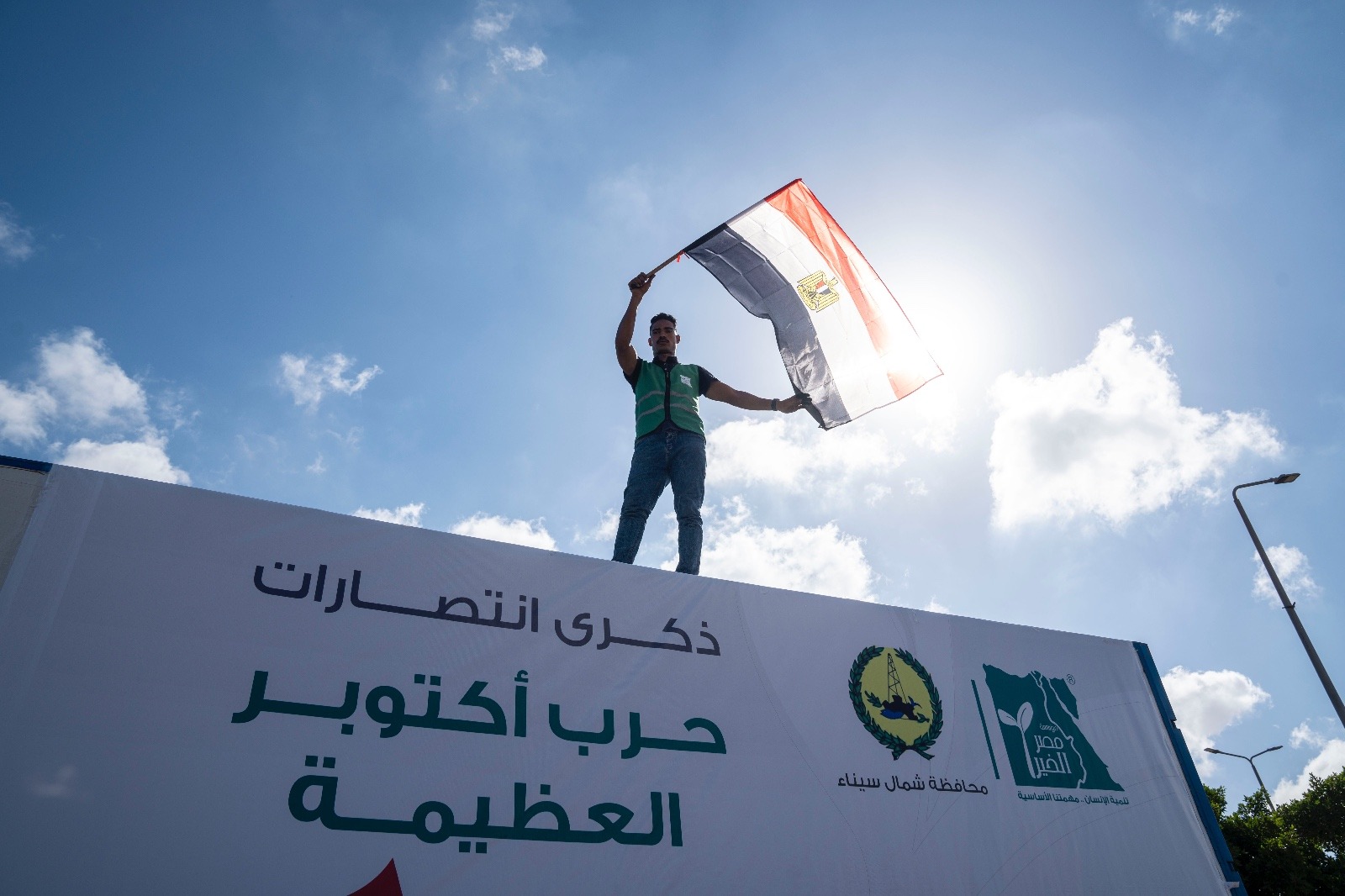بالصور… محافظ شمال سيناء يشهد اصطفاف شاحنات مصر الخير