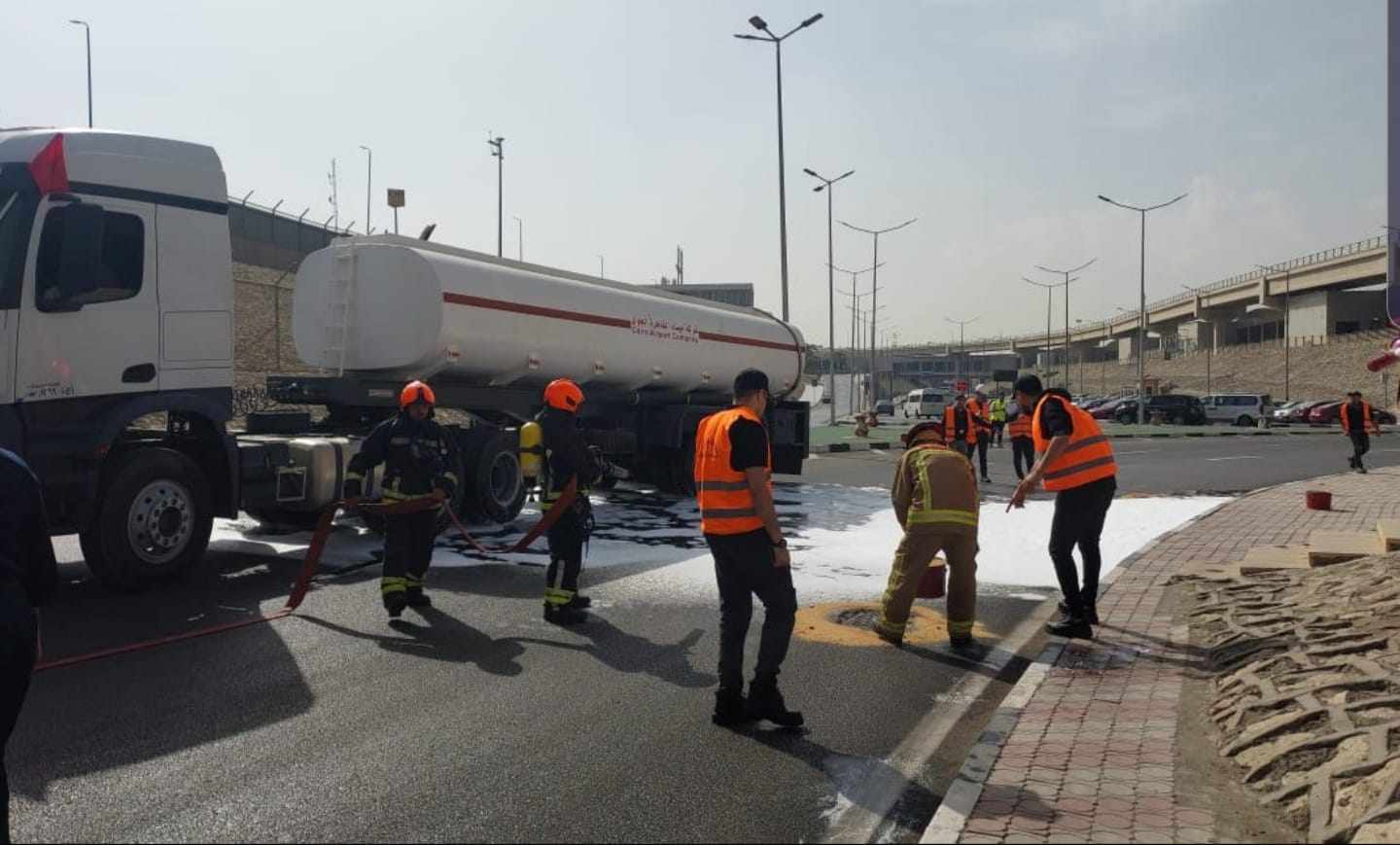وأدى الاصطدام إلى تسرب كمية وقود الطائرات JetA1 على مساحة تبلغ 2 متر عرض في 15 متر طول، بما يعادل نحو 30 لترًا، وعلى الفور تم إغلاق الطريقين المتقاطعين وتحويل حركة المرور إلى طرق بديلة لضمان سلامة المستخدمين ومنع الوصول إلى منطقة الحادث.