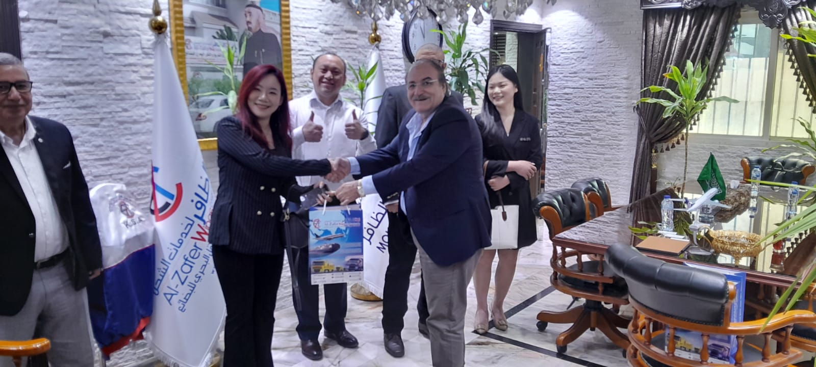 قام وفد من شركة ” الشرق الأقصى” لخدمات الشحن الدولية من مدينة شينزين بالصين يضم كل من السيدة/ زو وى الديرة المسؤولة عن قسم التجارة الدولية والسيدة/ جاليا والسيد/ سى واى كبيري تنفيذي المبيعات بالشركة، بزيارة الى شركة اجنحة الظافر لخدمات الشحن بمقر إدارة الشركة بمدينة جدة بالمملكة العربية السعودية.