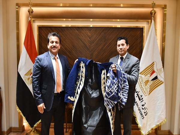 ورحب وزير الرياضة برئيس الاتحاد الدولي للعبة الكوراش ومرافقيه وبتواجدهم بمصر .