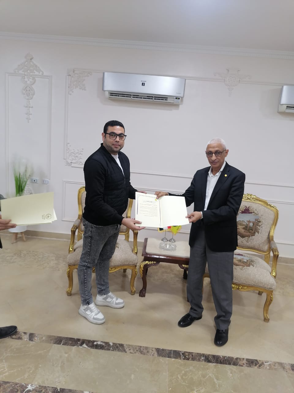 كرم اللواء دكتور خالد مجاور محافظ شمال سيناء ، اليوم ، العاملين في المكتب الفني بالمحافظة ، تقديرا لجهودهم في العمل ، في حضور ، عبد الموجود عبد الرحيم محمد، مدير عام المكتب.