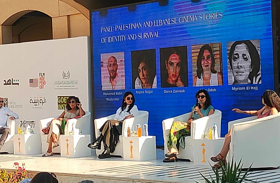 وبدأت المحاضرة بالوقوف دقيقة حداد على شهداء فلسطين ولبنان، بحضور الفنانة والمخرجة درة زروق، والمخرجة ميريام الحاج، والمنتجة مي عودة والمخرجة نجوى نجار، ويدير النقاش الناقد محمد نبيل.