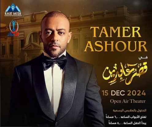 ونشرت شركة تذكرتي بوستر الحفل، عبر حسابها على إنستجرام، مصحوبا بتعليق: “انضم إلينا في ليلة لا تنسى مع تامر عاشور في قصر عابدين يوم 15 ديسمبر المقبل، استعد للاستماع إلى ألحان الفنان الشهير، وهو يأسرك بصوته العذب، وأدائه الساحر. لا تفوت هذه الفرصة لقضاء ليلة مليئة بالموسيقى، والإيقاع، والمتعة”.
