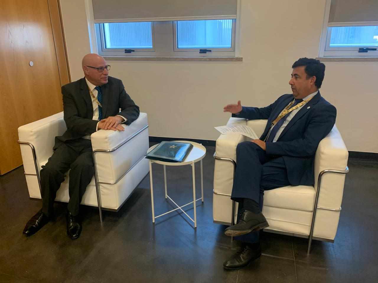 التقى السفير أحمد رشيد خطابي الأمين المساعد رئيس قطاع الإعلام والاتصال بجامعة الدول العربية، اليوم الأربعاء، نونو سامبايو وزير الدولة للشئون الخارجية والتعاون بالحكومة البرتغالية، على هامش الدورة العاشرة لمنتدى تحالف الأمم المتحدة لحوار الحضارات المنعقدة بكاشكايش في البرتغال.