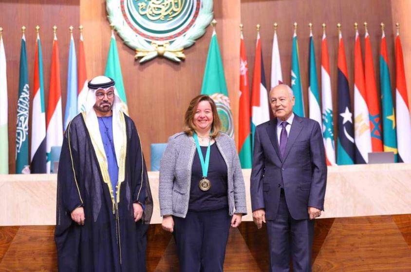 – الأمين العام للجامعة العربية يسلم مي عبد الحميد الجائزة في احتفالية كبرى بمقر الأمانة العامة للجامعة