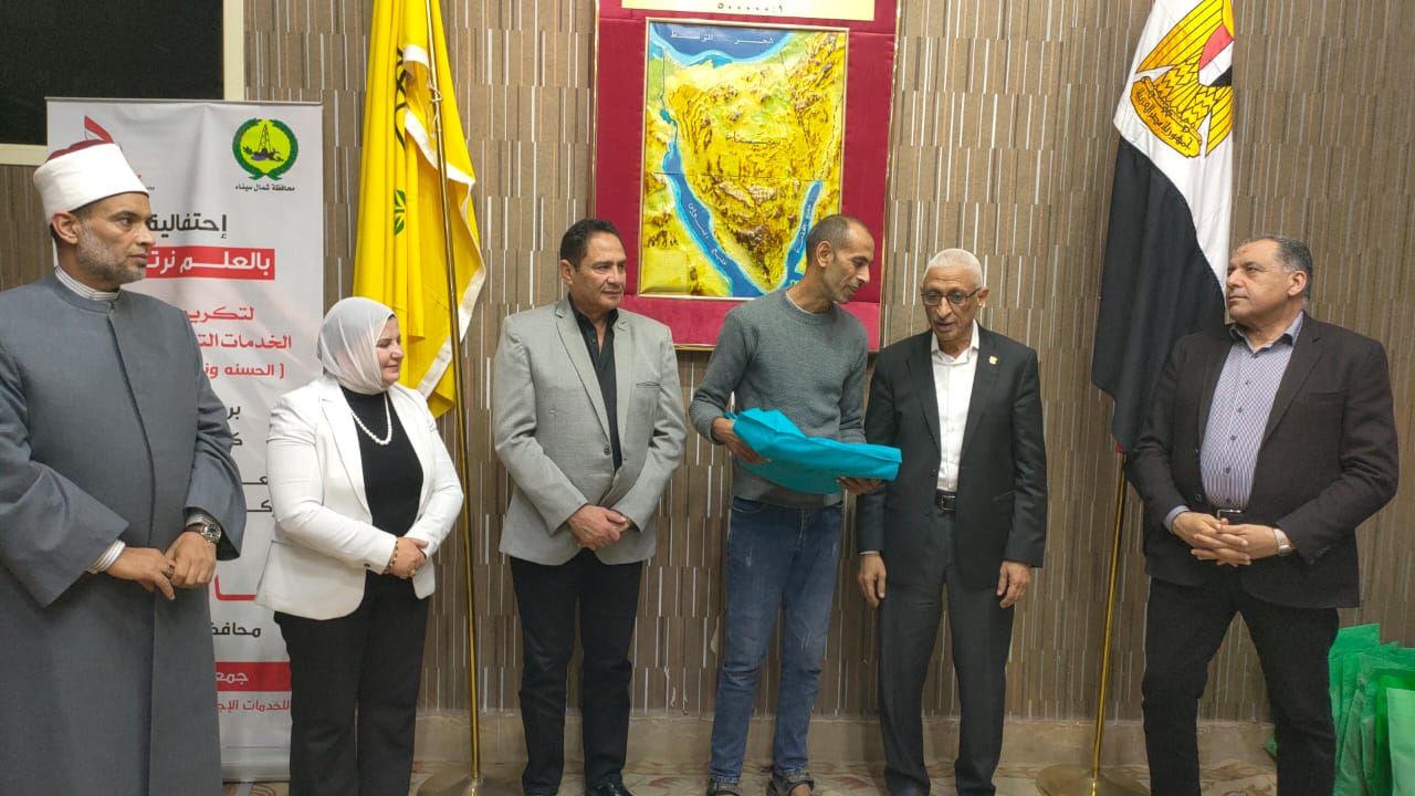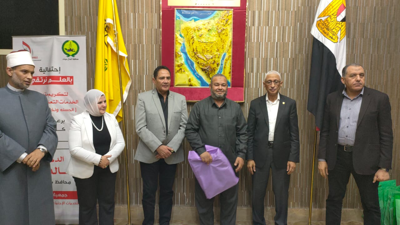 شهد اللواء دكتور خالد مجاور محافظ شمال سيناء ، اليوم ، احتفالية بالعلم نرتقي لتكريم مقدمي الخدمات التعليميه بمراكز الحسنة ونخل والشيخ زويد ، والتي نفذتها جمعية الفيروز ، وذلك في حضور اللواء عاصم سعدون نائب المحافظ واللواء أسامة الغندور سكرتير عام المحافظة و الدكتورة أماني غريب المدير التنفيذي للجمعية.