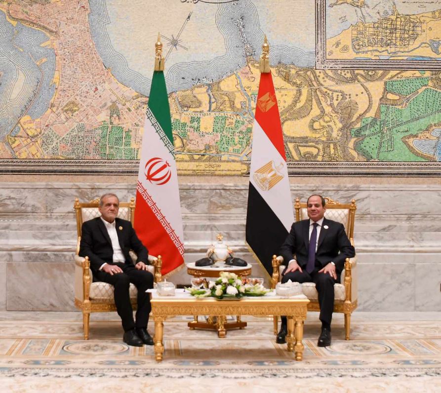 التقى الرئيس عبد الفتاح السيسي، بالرئيس الإيراني مسعود بزشكيان، وذلك على هامش قمة الدول الثماني النامية للتعاون الاقتصادي، التي تعقد بالعاصمة الإدارية الجديدة.