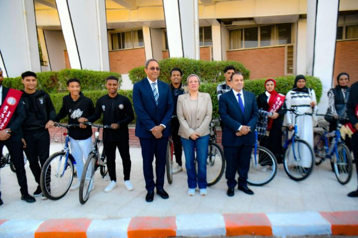 وزيرة البيئة تسلم 30 دراجة للفائزين في مسابقة صحتنا من صحة كوكبنا بجامعة جنوب الوادي