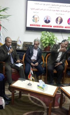 نظم المنتدى الاستراتيجي للفكر والحوار «بيت الفكر» بالتعاون مع حزب الاتحاد، ندوة سياسية بعنوان: «مستقبل الشرق الأوسط بعد أحداث سوريا وتأثيراته على الأمن القومي المصري»، بمشاركة الكاتب الصحفي محمد صلاح الزهار، والكاتب والسيناريست الدكتور باهر دويدار، والمستشار رضا صقر رئيس حزب الاتحاد، يدير الندوة الكاتب الصحفي محمد مصطفي أبو شامة.