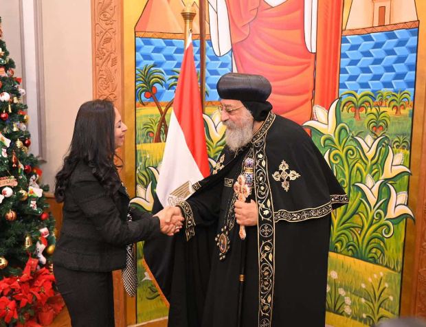وزيرة التضامن تزور البابا تواضروس الثانى للتهنئة بعيد الميلاد المجيد