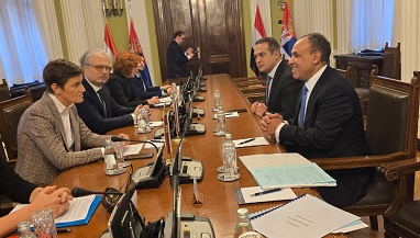 وزير الخارجية والهجرة يجتمع مع رئيسة البرلمان الصربي استمرارا للقاءات التي يعقدها خلال زيارته بلجراد