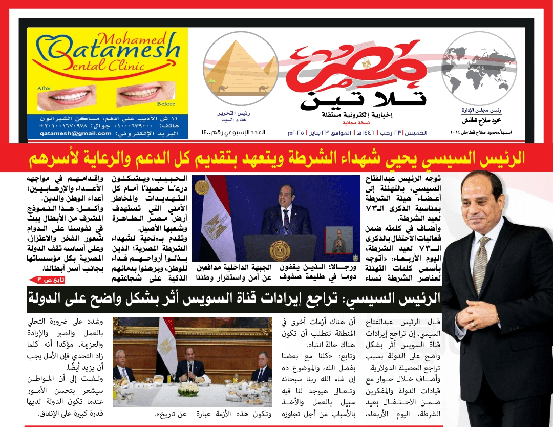 تقدم صحيفة مصر تلاتين عدد اسبوعي يصدر عن الصحيفة كل يوم خميس نستعرض فيه ونوثق أهم أحداث الاسبوع على المستوى المحلي والعالمي .