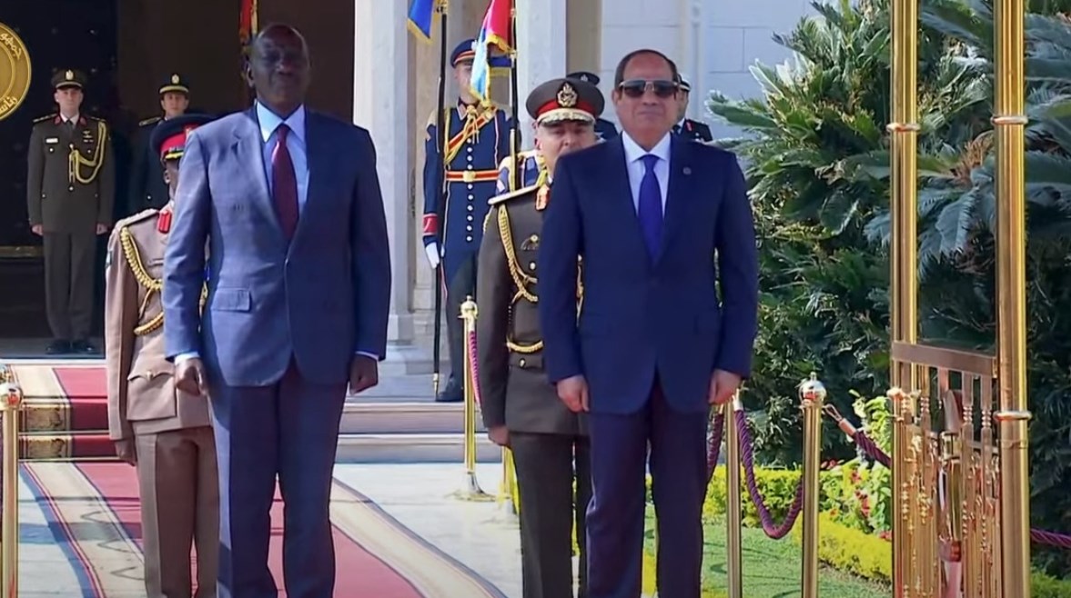 وأجريت مراسم استقبال رسمية للرئيس الكيني، حيث عزف النشيد الوطني لكل من مصر وكينيا، واستعرض الرئيسان ضيف الشرف.